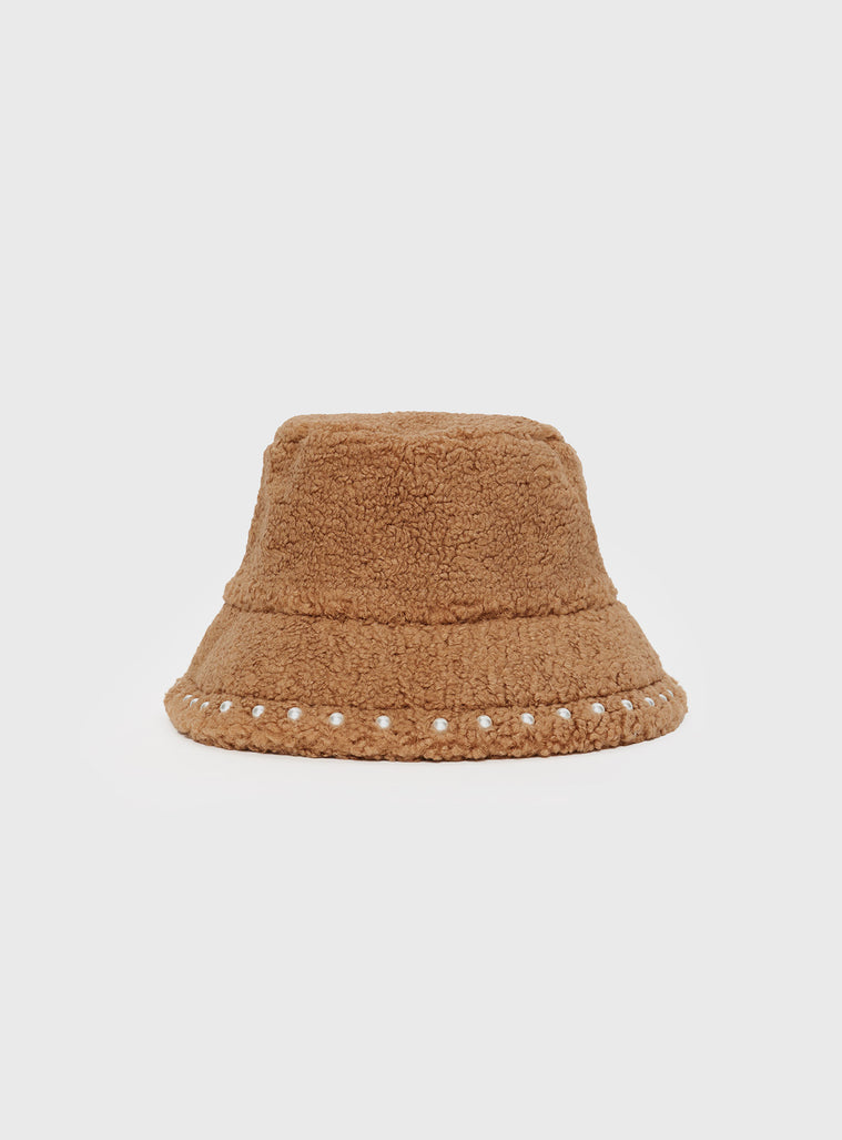 Fluffy hat Adjustable internal drawstring, pearl detail