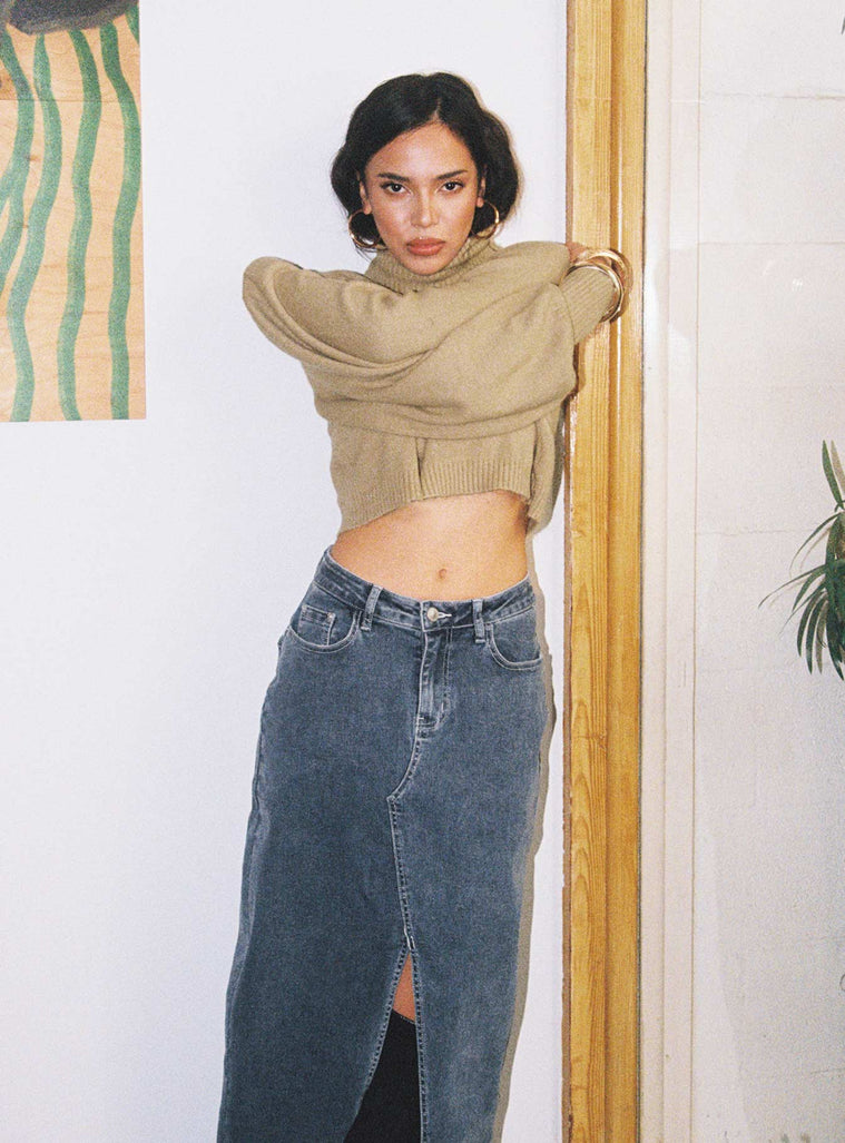 Zahara Cropped Turtleneck Sweater Beige Petite