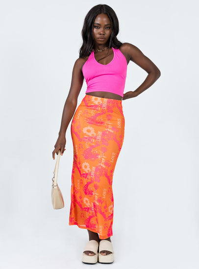 Zonya Mesh Floral Maxi Skirt Orange